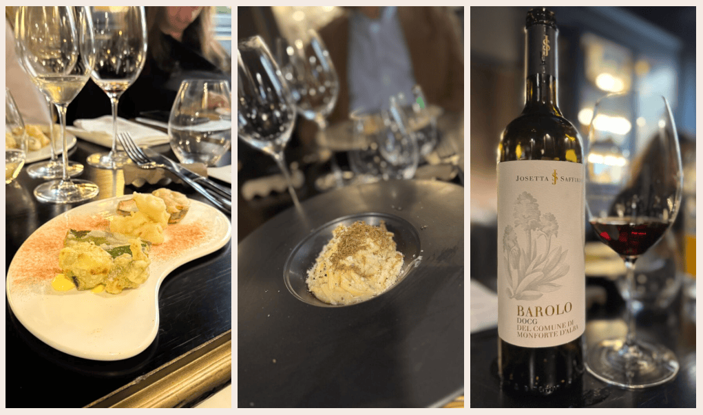 In questo contesto, il press lunch è diventata l’occasione ideale per raccontare l’azienda ed i suoi Barolo attraverso una serie di abbinamenti mirati, costruiti in dialogo continuo tra Langhe e Roma, tra colline piemontesi e vicoli lastricati.