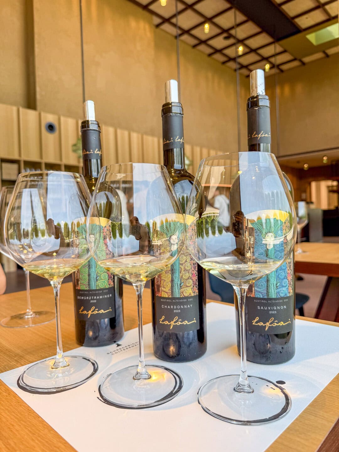 La degustazione si arricchisce con il Gewürztraminer e lo Chardonnay della linea Lafóa e si conclude con il sorprendente LR, dedicato a Luis Raifer, storico presidente della cantina, molto ben voluto e che ha molto contribuito alla crescita aziendale.