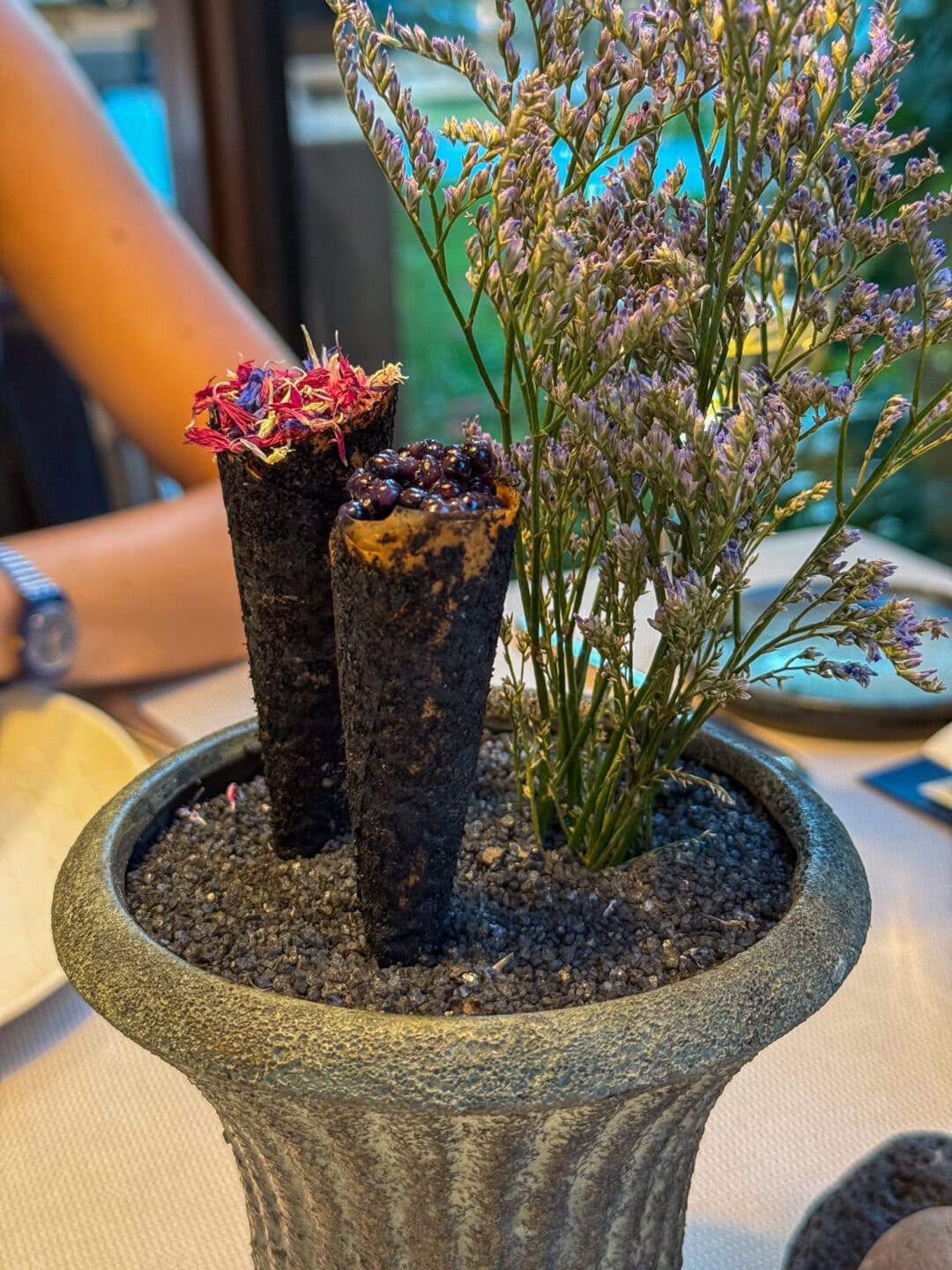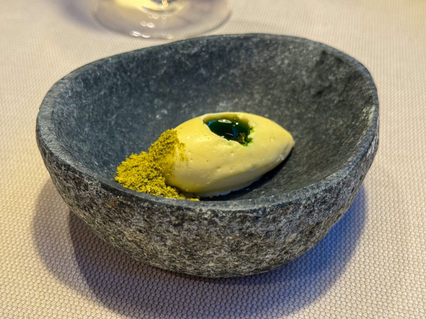 Ogni piatto qui sembra raccontare qualcosa, come la “passeggiata nei boschi” in cui il ghiaccio secco viene utilizzato per diffondere una essenza al sapore di muschio che ricorda un sentiero in un bosco.