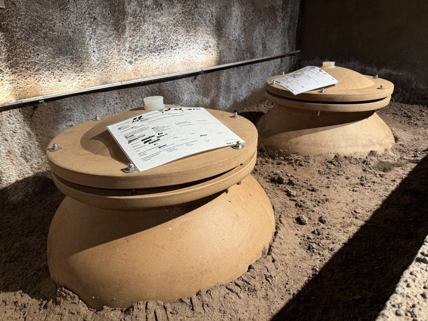 Tra i filari, quasi come una porta segreta, si apre l’ingresso della cantina. Qui regna la sperimentazione: barrique di diversi legni, anfore e vasche in cemento interrate. Ogni etichetta di St. Quirinus è una piccola produzione, unica e ricercata che ci viene illustrata con orgoglio da Michael.