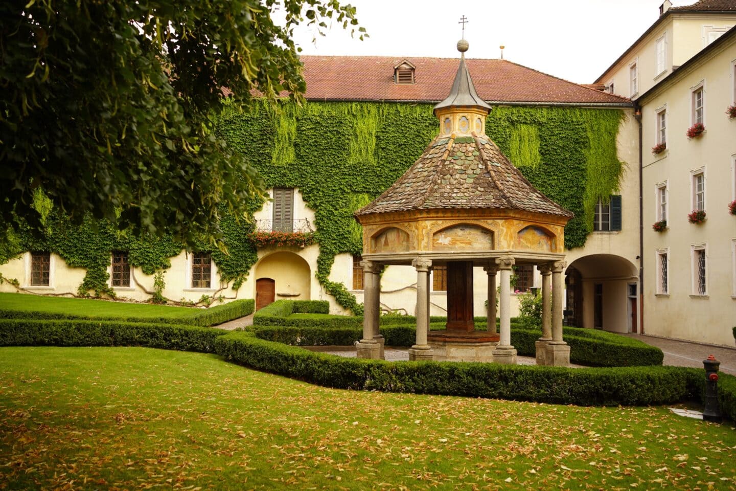 La visita all’abbazia inizia dal meraviglioso cortile esterno al cui interno ci soffermiamo ad osservare il pozzo delle meraviglie rinascimentale a pianta ottagonale che raffigura le 8 meraviglie, ovvero le 7 meraviglie del mondo antico e l’abbazia di Novacella stessa.